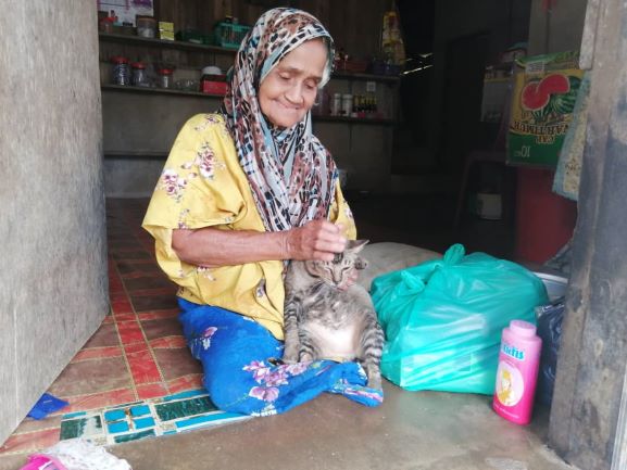 HULU TERENGGANU: Sejak kematian suaminya lebih sepuluh tahun lalu, warga emas orang kurang upaya (OKU), Endut Abu Bakar, 78, hanya meraikan Hari Raya Aidilfitri dengan ditemani kucing peliharaannya.