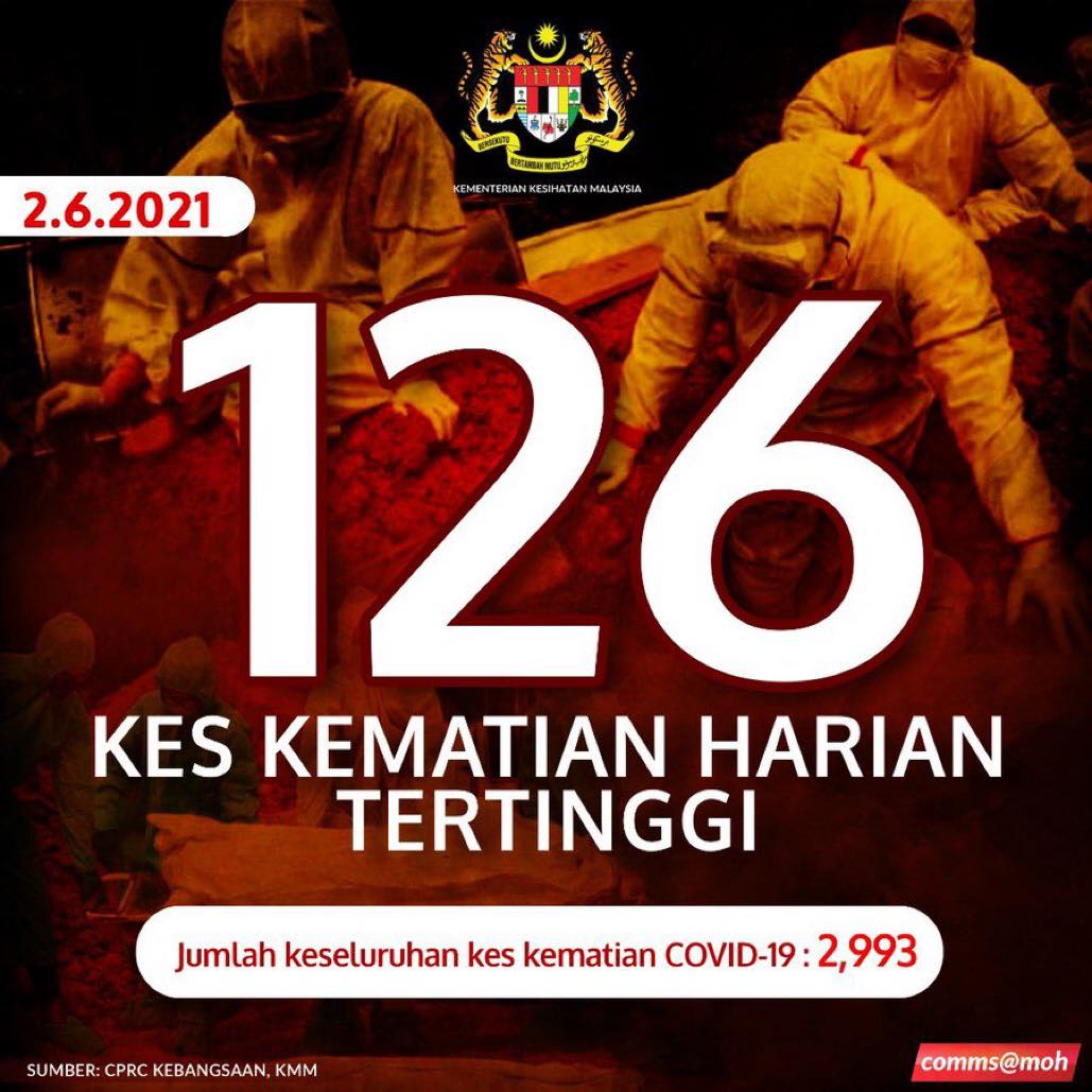 PETALING JAYA : Kes kematian harian Covid-19 pada hari ini mencecah 126 orang, angka tertinggi tiga angka sejak pandemik ini bermula, menurut Ketua Pengarah Kesihatan, Tan Sri Dr. Noor Hisham Abdullah.