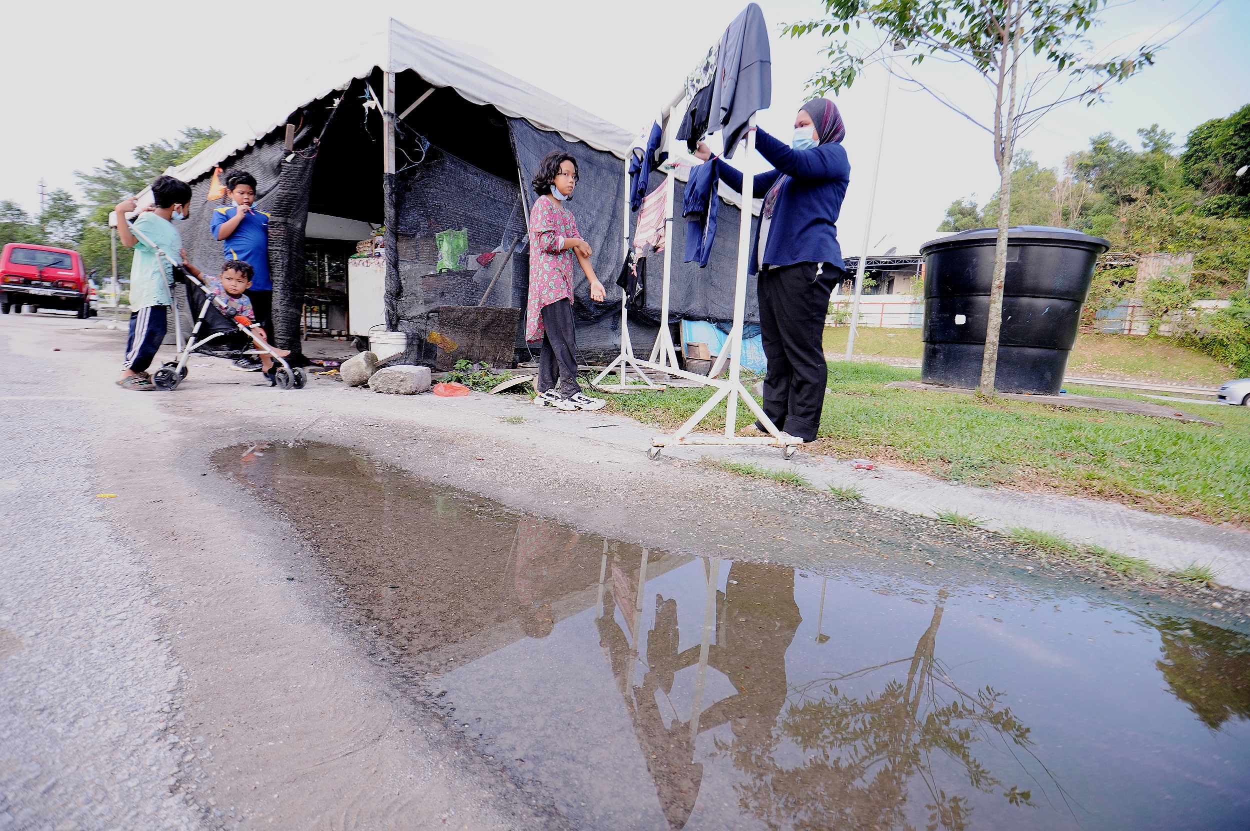 “Jadi, saya bawa anak-anak saya tinggal di sini. Jika mahu belajar, guru mereka menghantar modul menerusi aplikasi WhatsApp. Saya ada memaklumkan guru berkenaan yang saya tinggal di bawah khemah ini,” katanya yang pernah menjumpai ular ketika tidur di khemah itu.