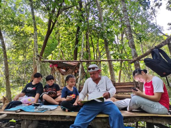 KOTA KINABALU: Mendaki bukit di kawasan ladang getah sejauh dua kilometer (km) untuk mengikuti sesi Pengajaran dan Pembelajaran di Rumah (PdPR) tidak pernah mematahkan semangat tiga beradik di Kampung Kopozon Gana, Papar dekat sini untuk belajar.
