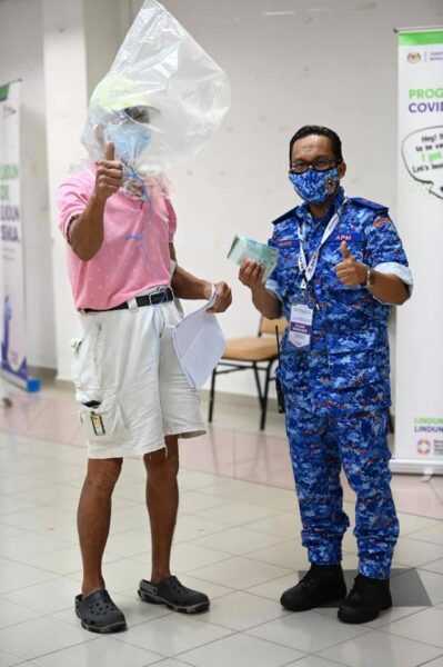 PETALING JAYA: Seorang lelaki yang hadir bagi mendapatkan suntikan di Pusat Pemberian Vaksin (PPV) Universiti Sains Malaysia (USM) semalam menarik perhatian petugas apabila memastikan dirinya ‘dilindungi’ dengan menutup keseluruhan bahagian kepalanya dengan plastik.