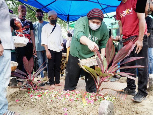 Pengebumian jenazah Allahyarham dihadiri lebih 200 orang terdiri daripada ahli keluarga, sanak saudara, penduduk kampung dan rakan-rakan artis. – UTUSAN ONLINE