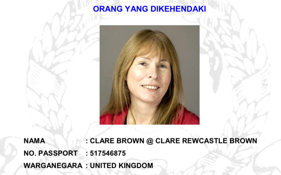 PETALING JAYA: Editor Sarawak Report, Clare Rewcastle-Brown disenaraikan sebagai individu dikehendaki Polis Diraja Malaysia (PDRM).