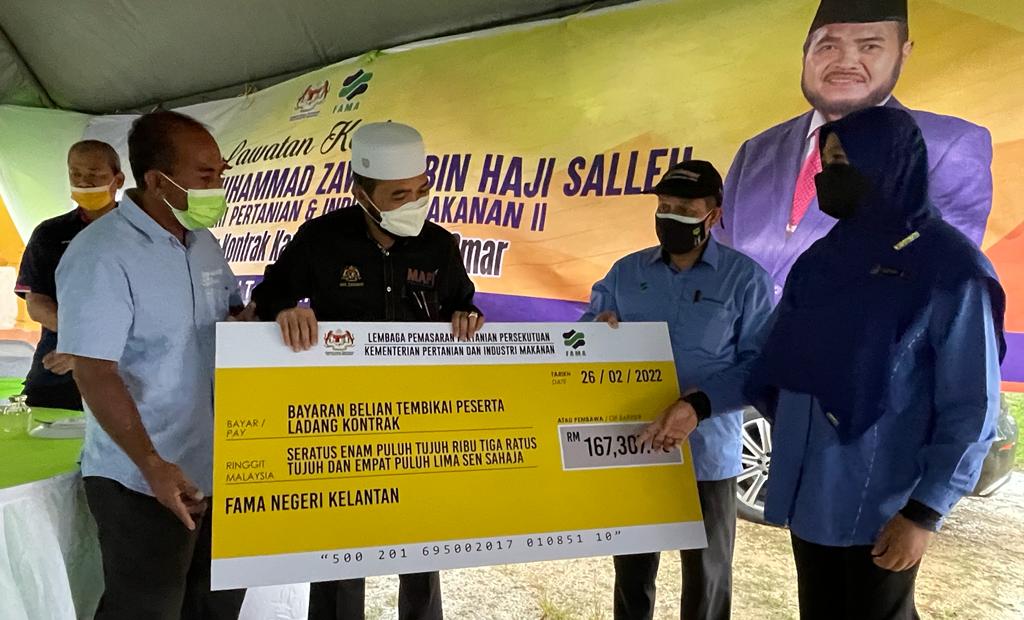 Dalam majlis sama, Nik Muhammad Zawawi menyampaikan serahan hasil bayaran jualan tembikai berjumlah RM167,307 kepada 23 penanam selain peruntukan RM20,000 untuk pembinaan Pusat Pengumpulan Ladang (PPL).