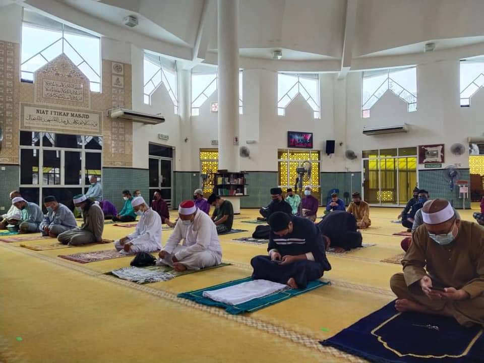 Selain itu, jemaah juga perlu memakai pelitup muka serta mengamalkan penjarakan fizikal ketika berada di ruang masjid. – UTUSAN