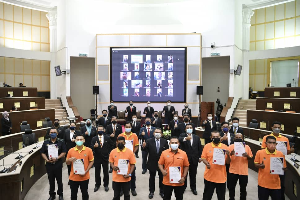 Mereka menerima sijil penghargaan daripada Datuk Bandar MBSP, Datuk Azhar Arshad pada majlis Perhimpunan Korporat Bandaraya di Menara Bandaraya MBSP, Bandar Perda di sini.