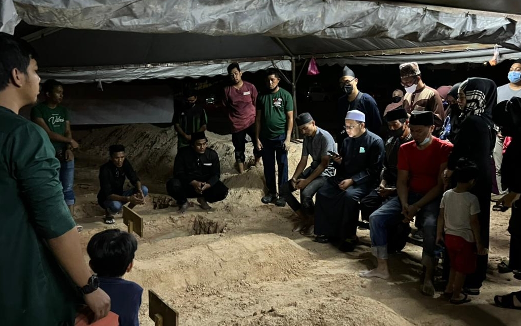 JENAZAH Amran Tompel selamat dikebumikan di Tanah Perkuburan Islam Forest Heights, Senawang, Seremban kira-kira pukul 9.45 malam semalam, selepas meninggal dunia di rumahnya di Taman Matahari Heights, Senawang pada petang hari yang sama. – UTUSAN/ZAKKINA WATI AHMAD TARMIZI