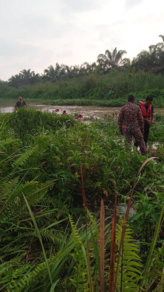 PASIR SALAK: Seorang kanak-kanak lelaki dikhuatiri lemas selepas kereta dinaiki bersama ibu dan adik perempuannya terjunam ke dalam tali air di Kampung Bukit Chawi, Kampung Gajah di sini hari ini.