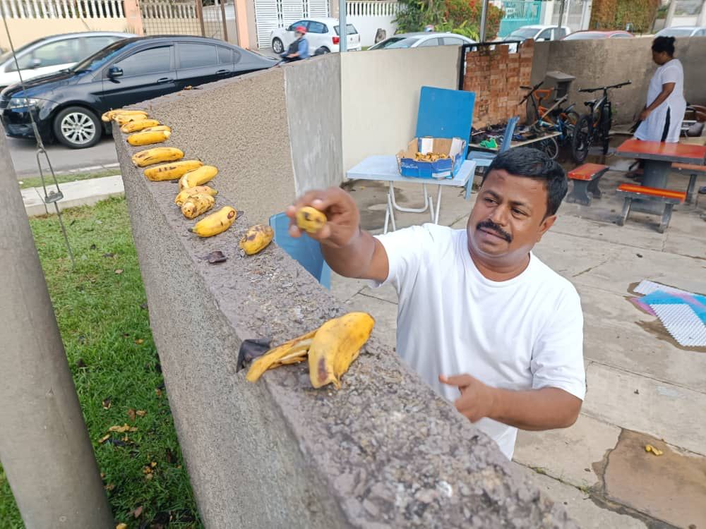 “Kalau tidak ada pisang, saya akan hidangkan mereka nasi beralaskan daun pisang yang juga merupakan makanan kegemaran mereka,” jelasnya.