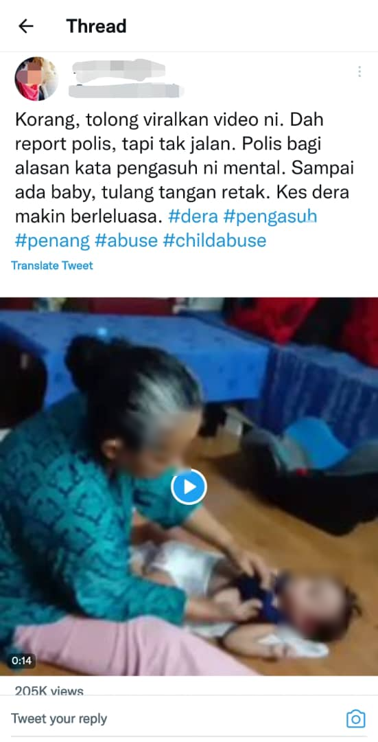 Beliau mengulas mengenai video yang tular di dalam media sosial Twitter sejak semalam berhubung insiden seorang wanita yang dipercayai pengasuh menampar pipi seorang kanak-kanak yang hanya memakai lampin dengan kuat termasuk menarik tangan kanak-kanak terbabit.