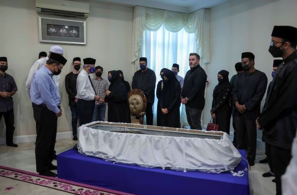 Jenazah Allahyarham dibawa ke Masjid Tuanku Zainal Abidin (MTMZA) pukul 10.25 pagi tadi untuk diberi penghormatan terakhir. – UTUSAN