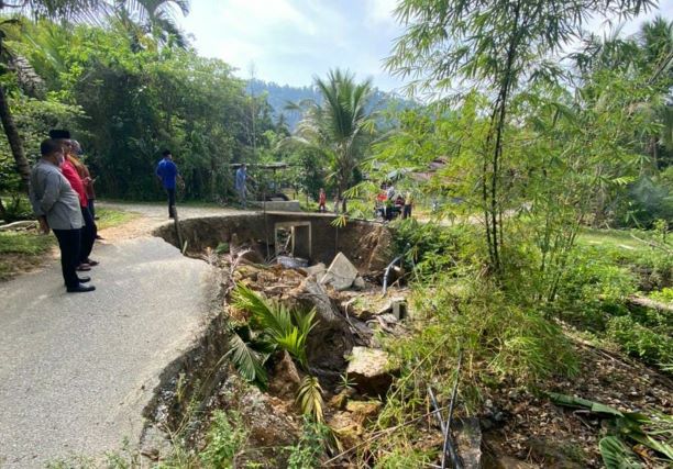 “Saya dapati kesan runtuhan semakin luas sehingga kok saliran anak sungai terputus dan jambatan di jalan itu turut runtuh.
