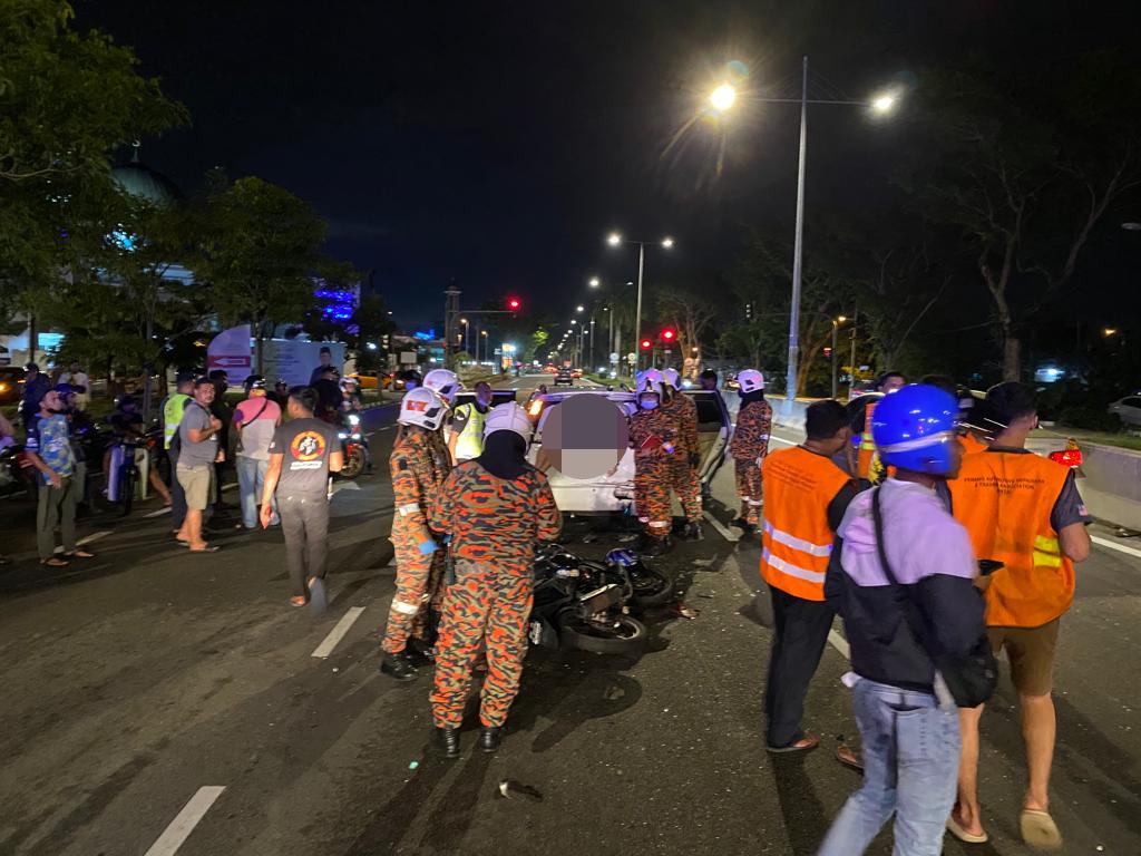 Dalam pada itu, pasukan bomba dari Balai Bomba dan Penyelamat Bayan Baru turut membantu mengeluarkan mangsa yang semasa itu berada dalam keadaan separuh sedar. – UTUSAN