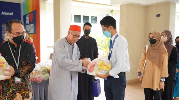 Beliau turut merakamkan penghargaan kepada Yayasan Dakwah Islamiah Malaysia atas sumbangan pek bantuan makanan kepada siswa dan siswi USIM yang kurang berkemampuan. Dengan sejumlah 500 pek iftar disediakan. –UTUSAN