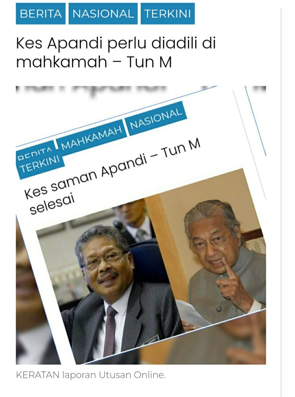 Semalam, Dr. Mahathir mengakui terkejut susulan kes saman Mohamed Apandi erhadap Kerajaan Malaysia dan beliau yang diselesaikan di luar mahkamah.