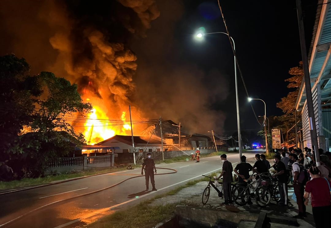 Sementara itu, tinjauan di lokasi mendapati api masih lagi marak dan bomba sedang bertungkus-lumus memadamkan kebakaran.
