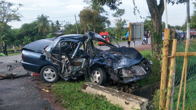 “Kemalangan berlaku apabila kereta dinaiki empat sekeluarga itu hilang kawalan ketika menghampiri selekoh dan masuk ke lorong bertentangan. Akibat itu, kereta tersebut telah bertembung dengan sebuah Proton Wira dipandu seorang pemuda berusia 24 tahun sebelum terbabas di bahu jalan,” katanya dalam kenyataan hari ini.