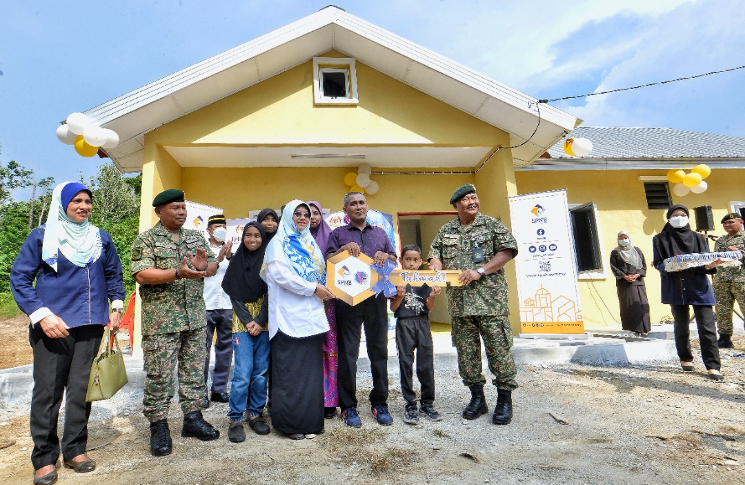 Dalam majlis berkenaan, Koperal (B) Mohamad Sahil Mat Said, 53, menerima kunci rumah baharu yang bernilai RM70,000 yang dibina di atas tanah milik isterinya di kampung berkenaan. – UTUSAN