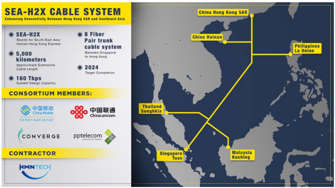 Dalam satu kenyataan bertarikh 12 Mei lalu oleh syarikat China, China Mobile International Limited (CMI), projek dasar laut itu dikendalikan secara bersama dengan syarikat-syarikat antarabangsa lain iaitu HMN Technologies Co. Limited (HMN Tech), China Unicom International (CUG), Phillipines Converge ICT Solution dan PPTEL SEA H2X Co. Ltd. yang akan menggunakan sistem pendawaian gentian optik standard tinggi dan berkapasiti 160 Tera Bits Per Second (Tbps).