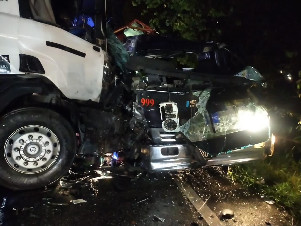 Dalam kejadian pukul 8.30 malam itu, pemandu lori jenis Isuzu, Mohd. Naim Muzaffa Azmi, 29, patah kaki kanan manakala pemandu treler jenis Scania, Ramis Sawaling @ Sabapathy, 48, cedera di kaki.