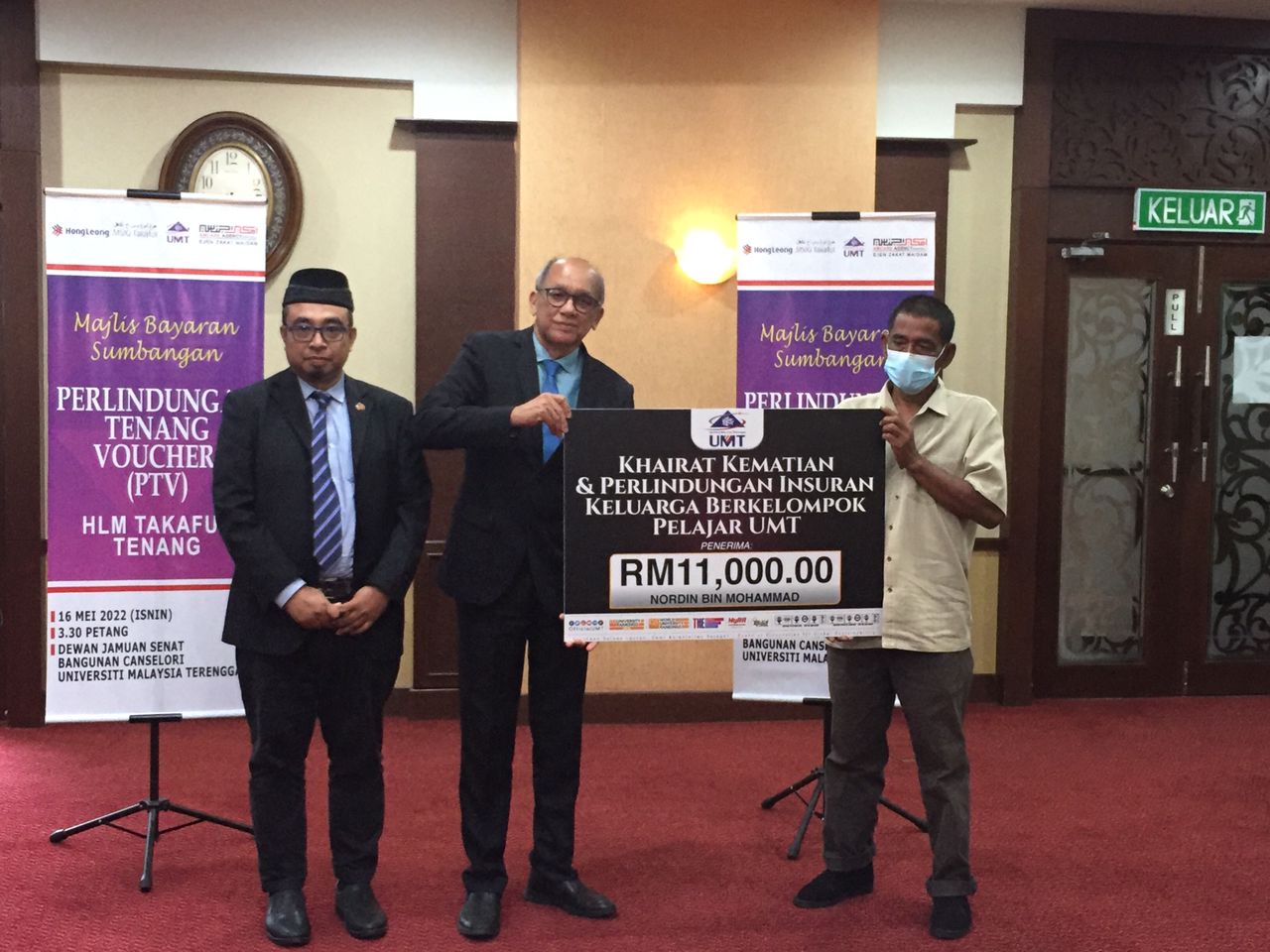 Sumbangan itu ialah menerusi khairat kematian dan skim Perlindungan Insurans Keluarga Berkelompok Pelajar UMT berjumlah RM11,000 di samping Baucar Perlindungan Tenang (PTV) sebanyak RM20,000.
