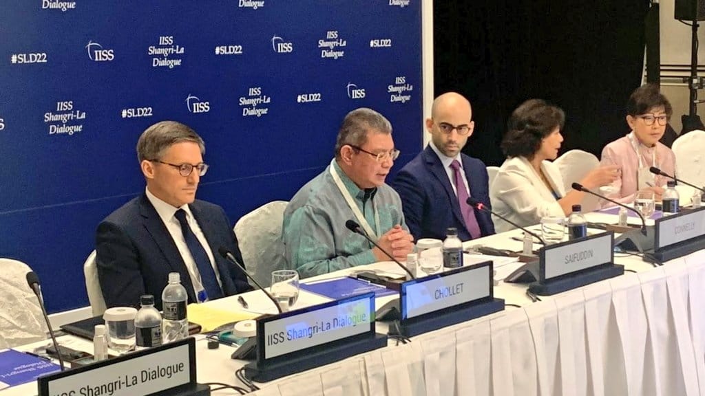 Perkara itu antara YANG disentuh oleh Menteri Luar, Datuk Seri Saifuddin Abdullah ketika diundang khas sebagai ahli panel Sidang Kemuncak Keselamatan Asia di Singapura semalam.