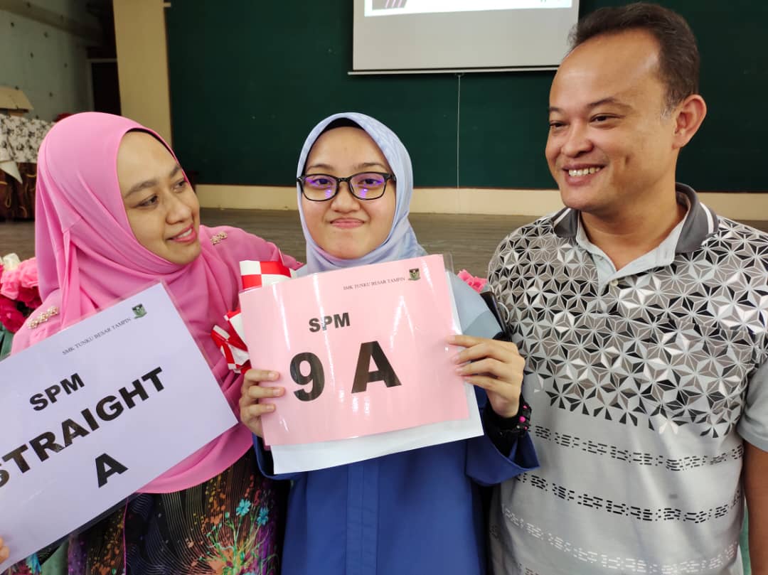“Walaupun hanya belajar di rumah, guru-guru memberikan tunjuk ajar secara dalam talian bagi membantu saya menguasai pembelajaran. Alhamdulillah, berkat usaha serta sokongan semua pihak saya mendapat keputusan semua A dalam sembilan mata pelajaran termasuk matematik tambahan yang mana pada peperiksaan percubaan SPM saya memperoleh gred E,” katanya ketika ditemui pemberita di Dewan SMK Tunku Besar Tampin, di sini hari ini.