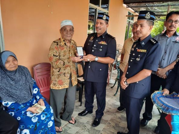 Terdahulu, dia menerima Pingat Jasa Pahlawan Negara yang disampaikan Ketua Polis Padang Terap, Deputi Superintenden Mulkiaman Manzar di rumahnya di sini.