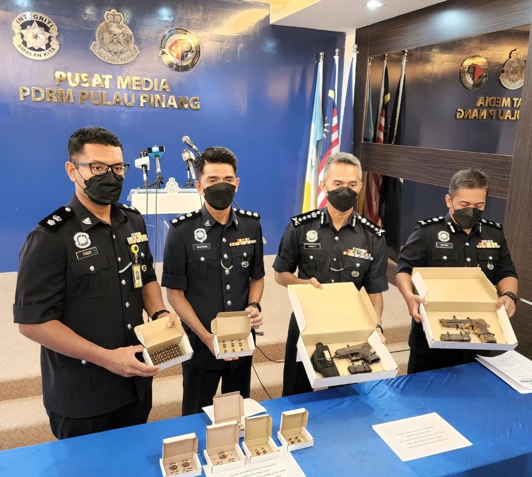 “Kita juga telah menghantar senjata api yang dirampas untuk pemeriksaan lanjut dan ujian balistik bagi melihat sekiranya ada kaitan dengan mana-mana kes jenayah lain,” katanya dalam sidang akhbar di Ibu pejabat Polis Kontinjen (IPK) Pulau Pinang di sini hari ini.