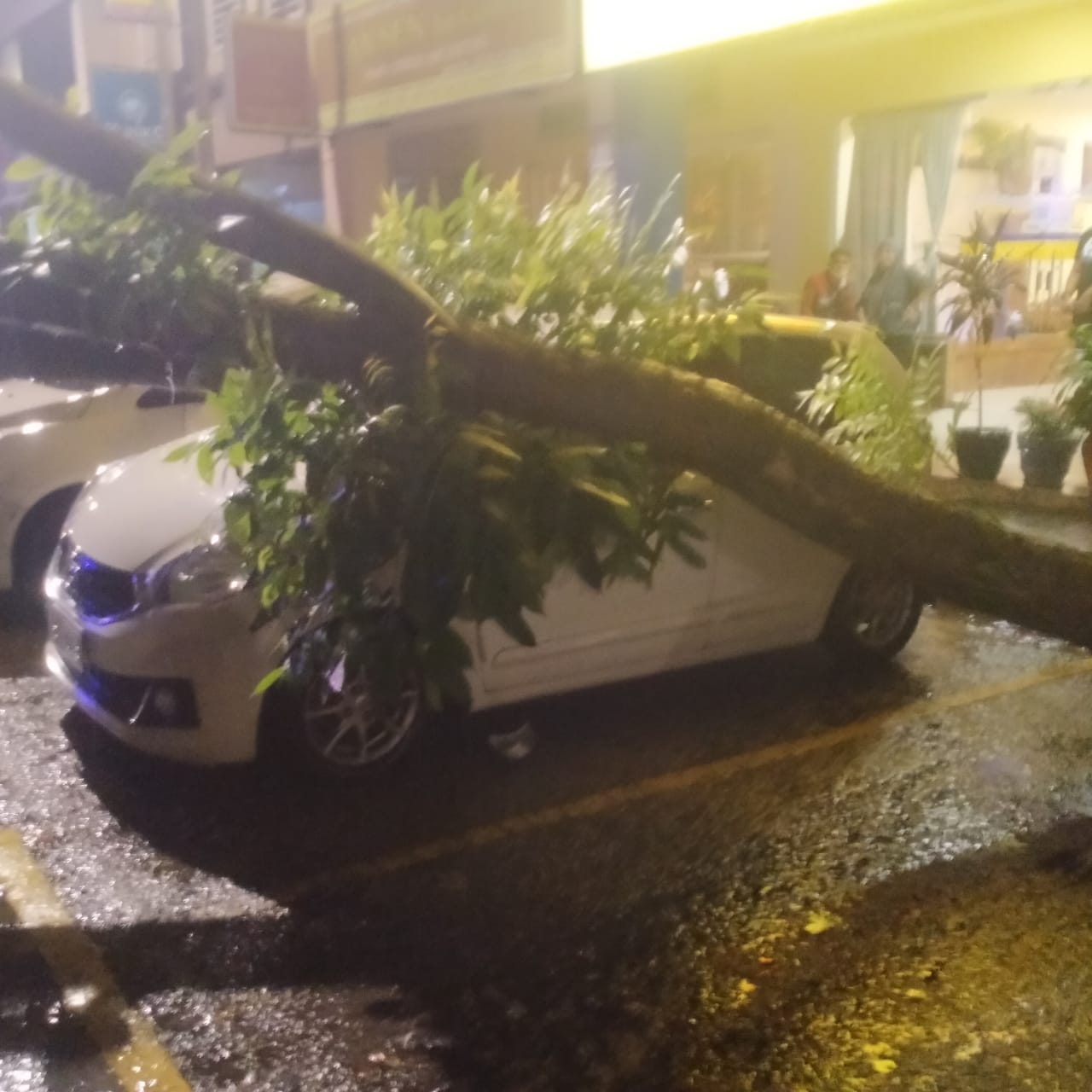 Katanya, pasukan bomba menerima panggilan kecemasan pada pukul 1.15 pagi melibatkan sebatang pokok menghempap kereta Perodua Myvi.