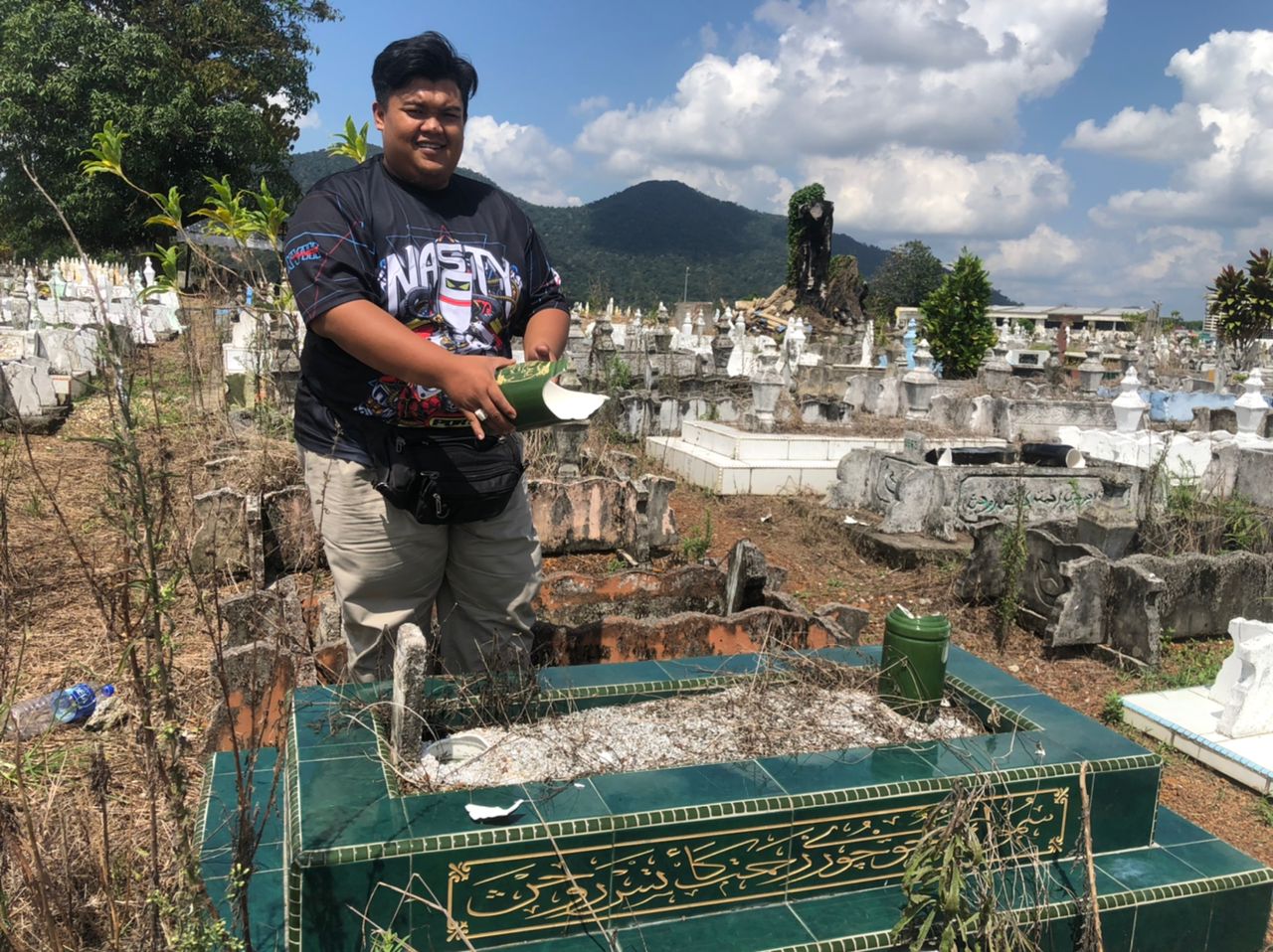 “Seorang rakan yang dalam perjalanan dari Taman Seri Impian dan melalui tepi kawasan kubur pada malam Isnin lalu terlihat seseorang dengan membawa lampu melakukan aktiviti di kawasan ini,” katanya, di sini hari ini.