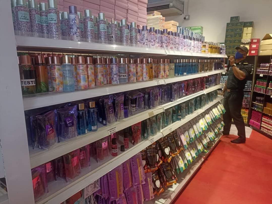 “Dalam serbuan pada pukul 12 tengah hari semalam, kami merampas 105 unit beg tangan, dompet dan selipar serta 1,232 botol minyak wangi yang dipercayai dipakaikan cap dagangan secara salah,” katanya dalam satu kenyataan di sini, hari ini.