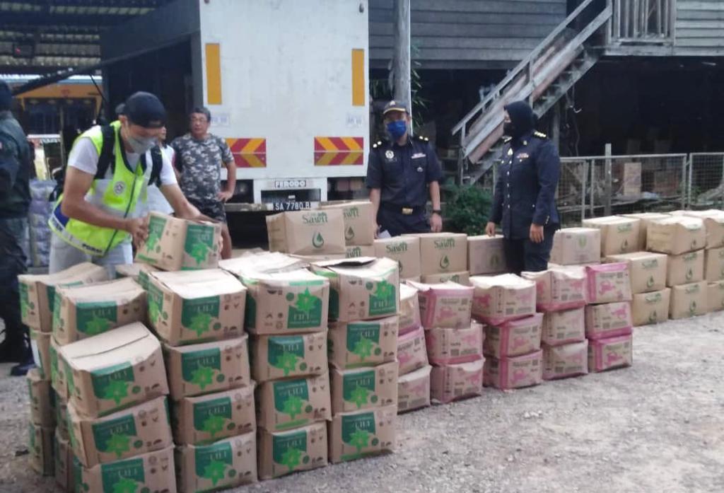 Pengarah Perdagangan Dalam Negeri dan Hal Ehwal Pengguna negeri, Georgie Abas berkata, serbuan kira-kira pukuk 6.20 petang oleh pasukan penguat kuasa kementeria itu yang dibantu anggota Batalion 16 Pasukan Gerakan Am (PGA) menemukan pelbagai jenis barang kawalan yang disorokkan dalam sebuah stor.