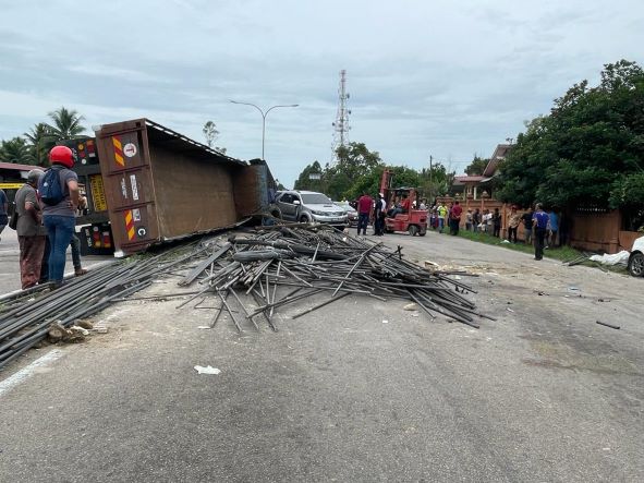 “Kami difahamkan treler yang sarat dengan muatan besi itu datang dari arah Jertih dan kemudian telah terbalik selepas masuk ke laluan kiri menghala ke Pasir Puteh Center di persimpangan lampu isyarat itu,” katanya ketika ditemui di lokasi kejadian di sini, semalam.