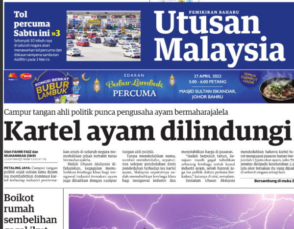 “Memang kita difahamkan ada masalah yang dikatakan (kartel ayam) tapi secara terperinci nanti biar kita tunggu MyCC buat pengumuman.