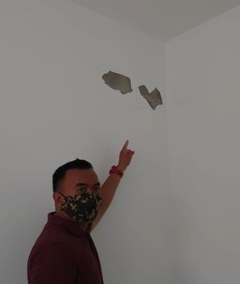 “Namun perkara yang paling mengecewakan adalah keadaan rumah yang kami terima, bukan sahaja persekitaran dalam keadaan kotor dan tidak terurus, malah banyak masalah berlaku walaupun perumahan ini baru diduduki beberapa bulan. Antara kerosakan ketara yang dapat dilihat adalah majoriti rumah ini berlaku keretakan, selain masalah perpaipan yang kerap berlaku kebocoran, khususnya di kawasan bilik air.