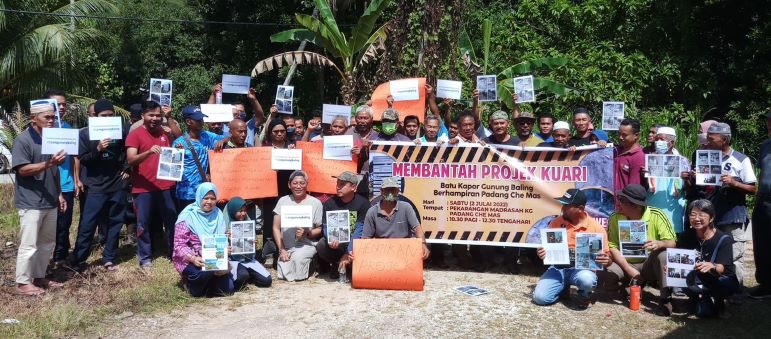 Rentetan itu, lebih 100 penduduk Kampung Padang Che Mas, Kampung Dalam Wang dan beberapa pertubuhan bukan kerajaan (NGO) melakukan bantahan berkaitan projek kuari batu kapur yang berhampiran dengan kedua-dua kampung itu.