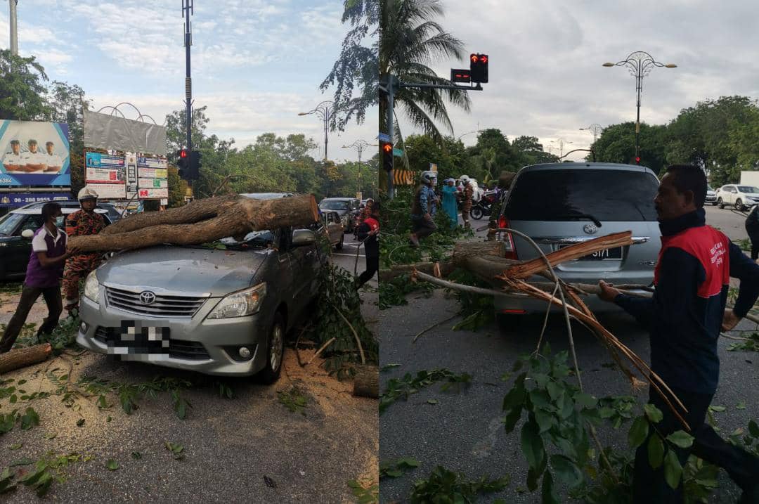 “Setibanya di lokasi kita mendapati terdapat sebatang pokok tumbang di atas jalan raya dan telah menghempap dua kenderaan.