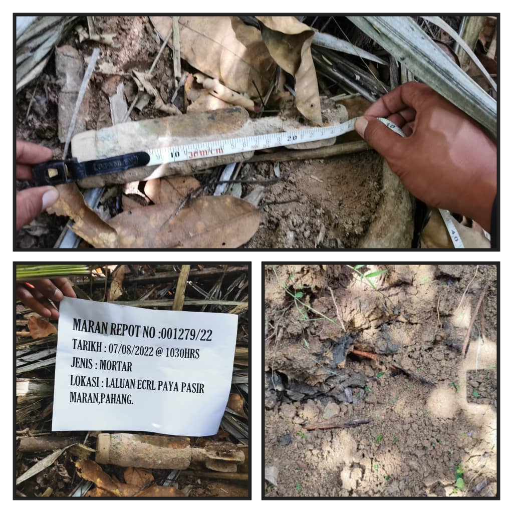 “Majikannya memaklumkan bahawa seorang pekerja di tapak pembinaan laluan berkenaan telah menemukan objek dipercayai bom lama. Unit Persenjataan IPD Maran kemudian memaklumkan berkaitan kejadian kepada UPB IPK Pahang untuk tindakan lanjut,” katanya dalam sidang akhbar khas di IPK Pahang, di sini hari ini.