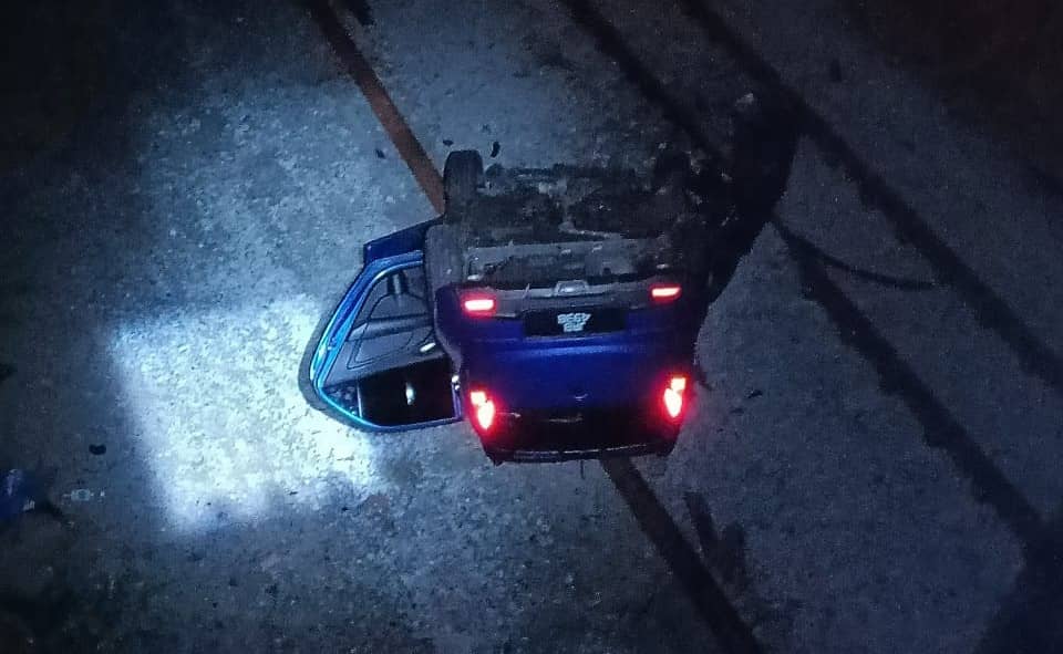 Katanya, sebaik sahaja tiba di tempat kejadian, terdapat sebuah kenderaan dalam keadaan terbalik berhampiran landasan kereta api tersebut.