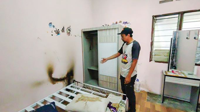 “Kini kami tak lena tidur. Tilam, langsir dan almari juga terdapat kesan kebakaran. Kami bimbang seluruh rumah pula terbakar, saya telah bawa semua barang keluar dari rumah namun menghairankan, di luar rumah juga barang-barang ini turut terbakar,” katanya.
