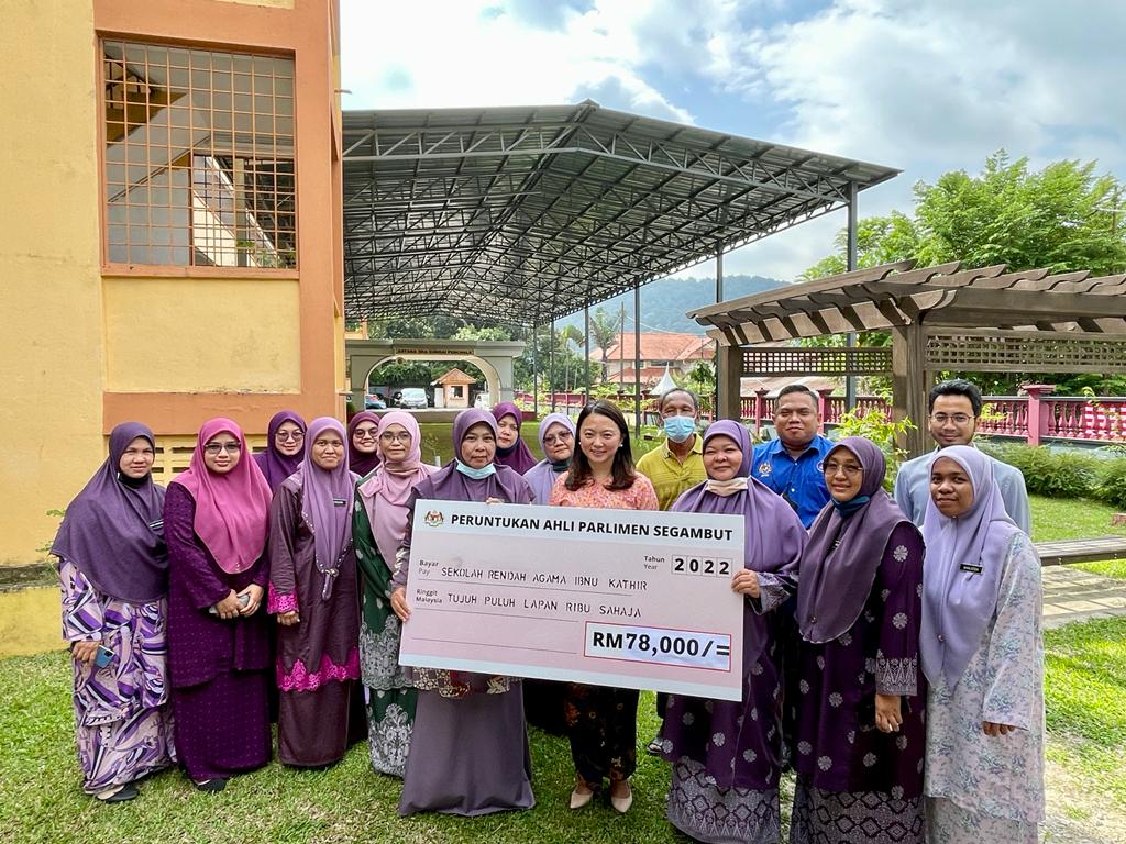 “Saya melawat SRA Ibnu Kathir di Kampung Sungai Penchala untuk melihat struktur bumbung baharu yang telah siap dibina di dataran sekolah. Sebanyak RM78,000 dibelanjakan menggunakan peruntukan Pejabat Ahli Parlimen Segambut bagi pembinaan struktur ini.