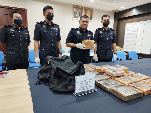 Beliau berkata sebanyak 21 ketulan mampat daun kering disyaki dadah jenis ganja dianggarkan seberat 21.9 kilogram bernilai kira-kira RM52,500 turut dirampas dalam serbuan tersebut.