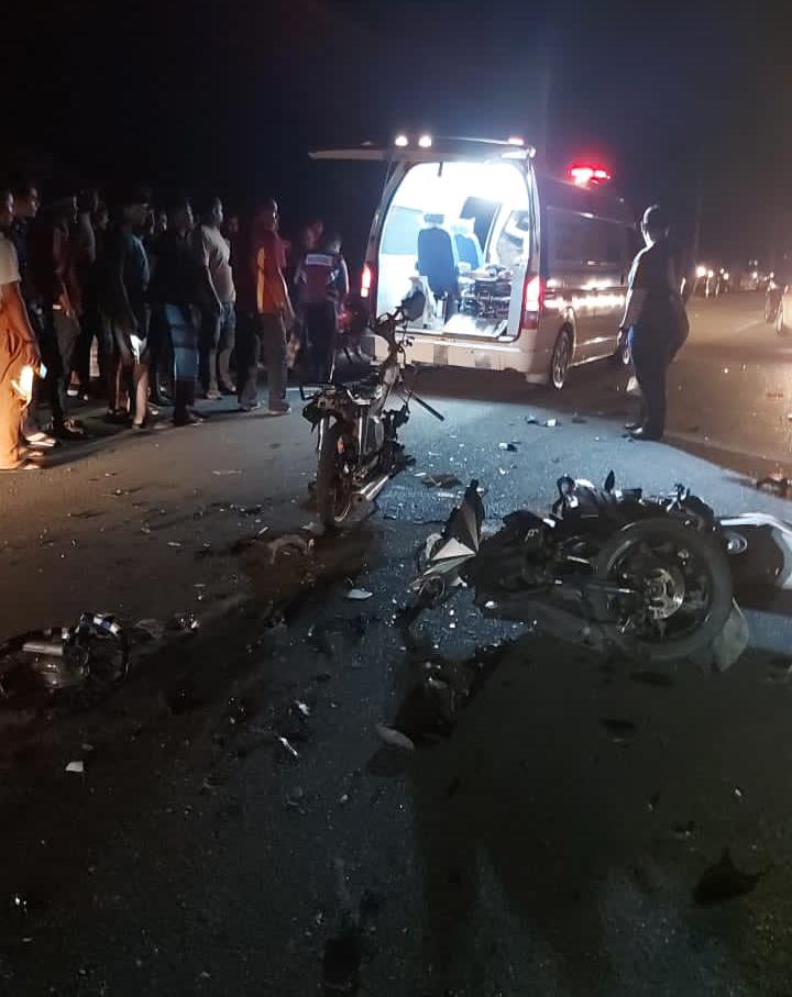 BALING: Dua remaja maut selepas motosikal ditunggang mereka bertembung dalam kemalangan di Kampung Dalam Wang, Jalan Batu 42-Tanjung Pari, di sini, semalam.
