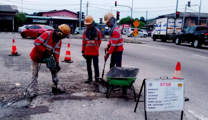 KOTA BHARU: Lebih 10 buah kereta dan motosikal mengalami kerosakan apabila terjatuh ke dalam lopak air akibat jalan berlubang di Cabang Empat Guchil Bayam, di sini sejak tiga bulan lalu.