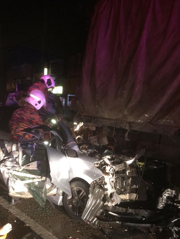 Menurutnya, semasa tiba di lokasi kejadian, kereta tersebut dipercayai telah merempuh belakang sebuah lori yang ditinggalkan di bahu jalan.