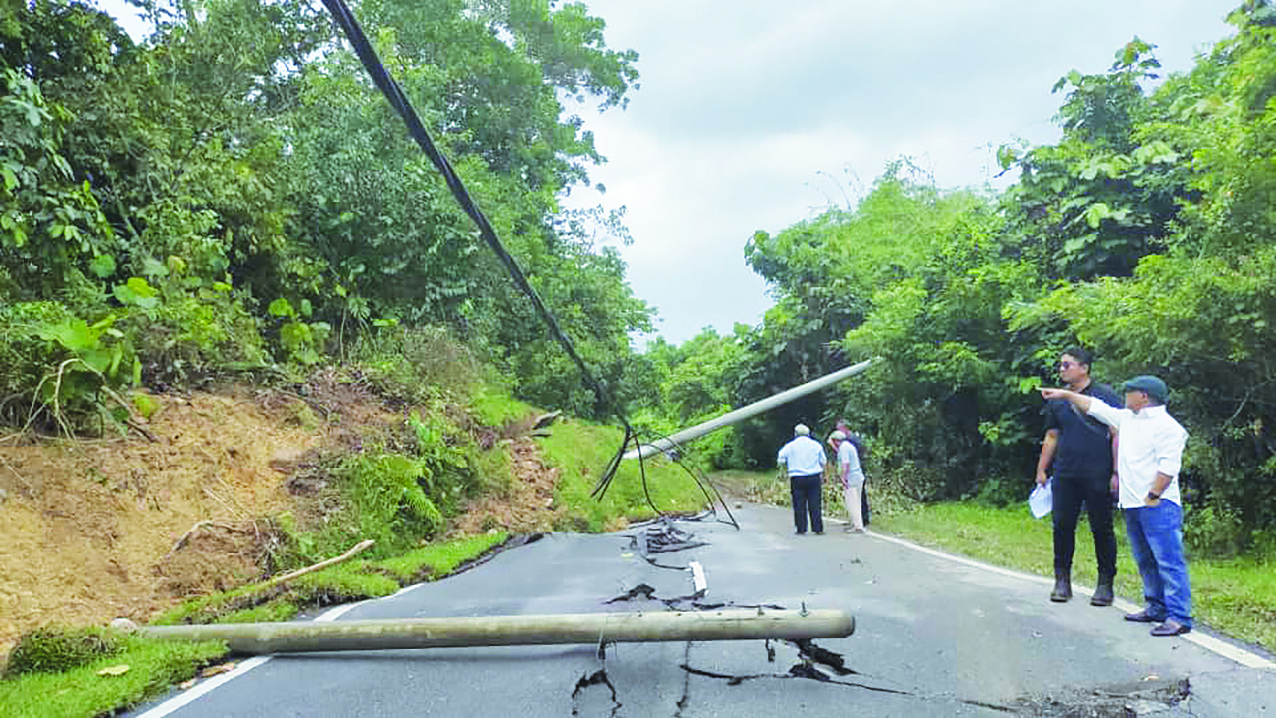 Dalam pada itu jelasnya, melalui pemeriksaan di tapak mendapati berlaku tanah runtuh lebih kurang sepanjang 70 meter di sebelah kiri jalan.