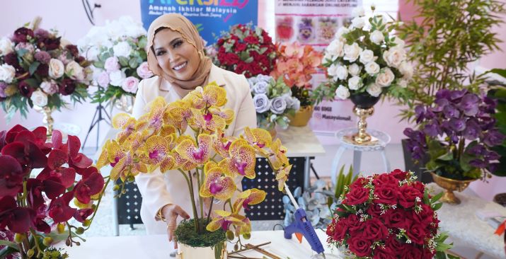 “Tidak sangka, hobi menggubah hiasan bunga terus dijadikan sumber pendapatan yang menguntungkan setelah hasil kerja tangan mendapat sambutan sangat menggalakkan daripada rakan-rakan dan keluarga terdekat”.
