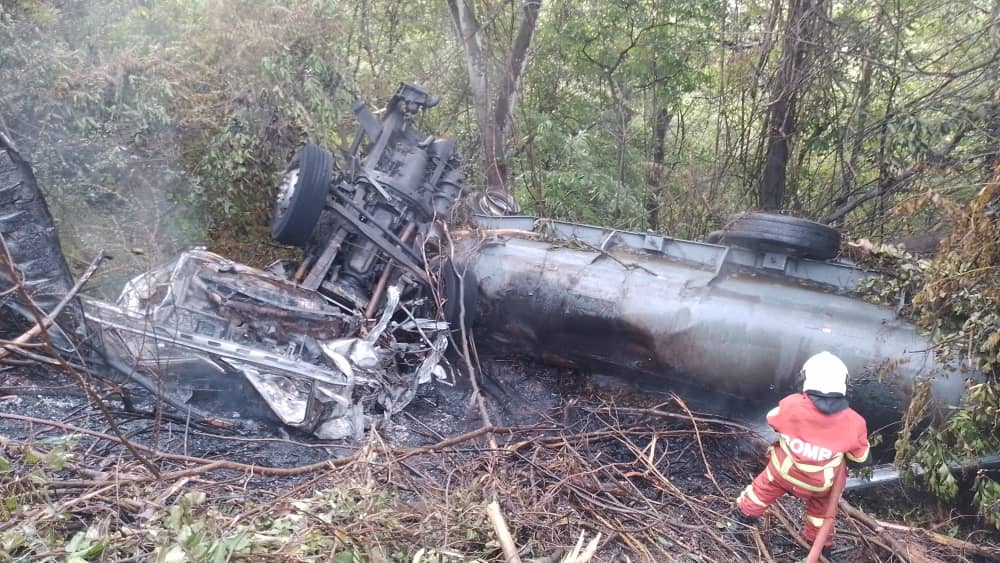 Dalam kejadian sekitar pukul 7.50 pagi itu, lori tangki tanpa muatan yang dipandu mangsa turut musnah terbakar selepas jatuh ke dalam gaung sedalam 30 meter.
