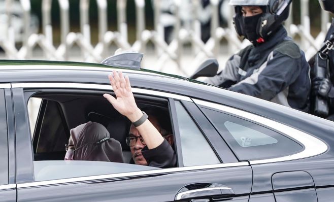 PETALING JAYA: Perdana Menteri, Datuk Seri Anwar Ibrahim tiba di Istana Negara di sini kira-kira pukul 2.37 petang ini.